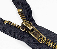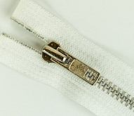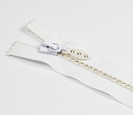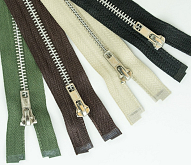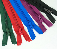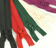 Open-end zip with Chunky plastic teeth. Used for jackets, coats, etc.