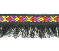 Quantity: Approx 35 metres on the roll Width (including fringing): Approx 3cm Colours: Multicoloured Braid with Black Fringing/Tassels